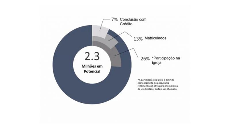 Temos 2.3 milhões de jovens que poderiam participar do Instituto. Destes 2.3 milhões, apenas 13% são matriculados no Instituto e apenas 7% concluem o Instituto.